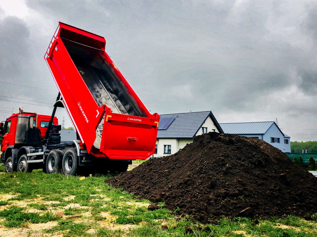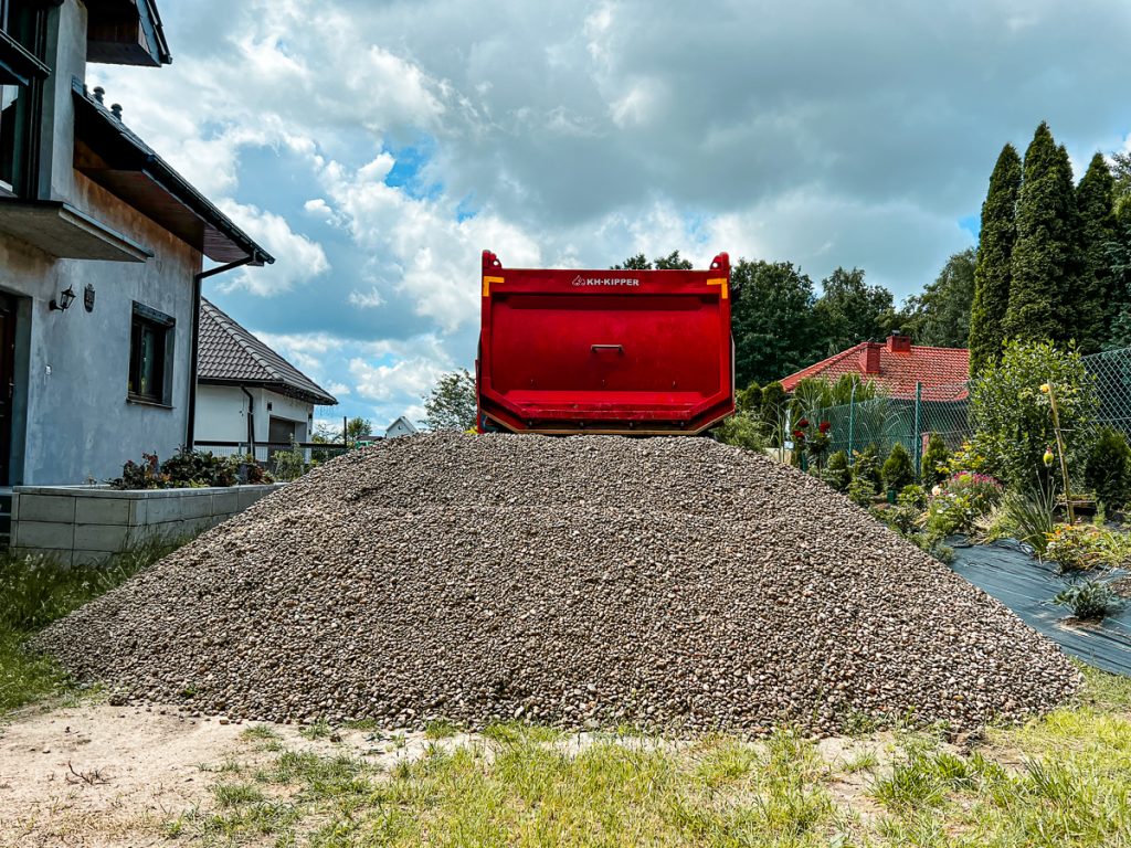 Materiał dowozimy czteroosiową wywrotką Mercedes Actros 8×8, co pozwala na obsługę również trudnych lokalizacji i większych ilości.